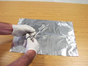 - Use fresh aluminium foil (standard kitchen foil is very clean) and place the sample onto the foil and fold the foil to make an envelope around the sample.